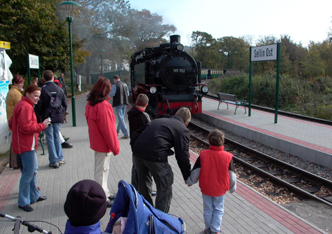 Most of the island sightseeing highlights are accessible by the „Raging Roland“, Rügens historic steam-powered narrow gauge railway which slowly moves at a maximum speed of 20 miles (30km) per hour connects the historic royal residence Putbus (called "The White City") with the Baltic seaside resorts Binz, Sellin, Baabe and Göhren as well as Granitz Castle.