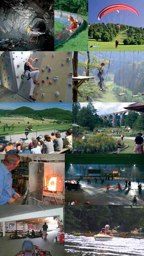 Nature, spa gardens, and pleasure parks; fairytale forest; summer toboggan run; visitor's mines; climbing hall; tennis center; gulf course; indoor go-cart & bowling centre; high rope garden; milk-museum, horseback riding arena, paragliding; canoe; rink with ice skating disco and a lot more.